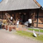 Altes Teakholzboot als Regal, mit Flügeltüren und Schublade